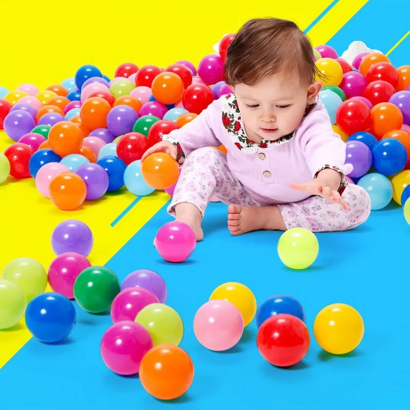 Ball Pit Balls. Great for play centers, pools, ball pits, and so much more, the Intex Medium Fun Ballz is a 100 pack bag full of fun! These 3 1/8 inch air filled ball pit balls come in 6 bright colors including red, yellow, blue, orange, green, and purple The constituent materials that go into making the Playpen balls and Ball Pit Balls are all FDA approved